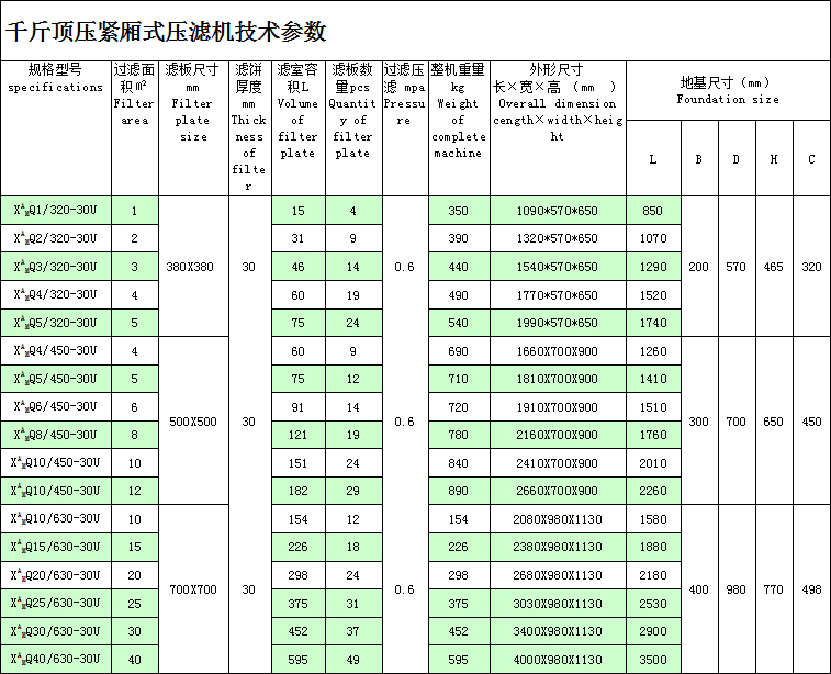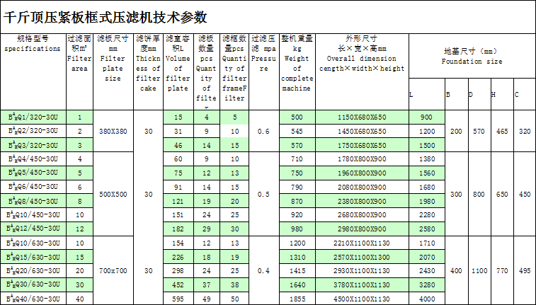 千斤頂壓緊壓濾機(jī)是采用螺旋千斤頂作為壓緊裝置,具有結(jié)構(gòu)簡(jiǎn)單、操作方便、無(wú)需電源、經(jīng)濟(jì)實(shí)用的特點(diǎn),一般用于過(guò)濾面積1~40m2的壓濾機(jī)。
